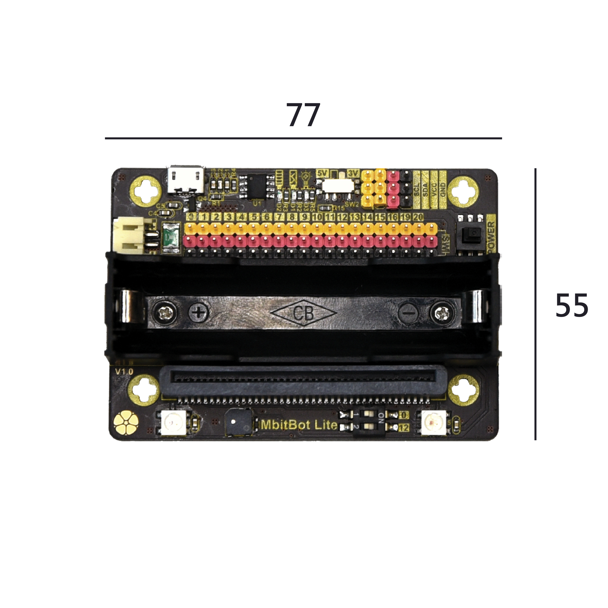 - 板載18650電池座,可使用18650鋰電池供電