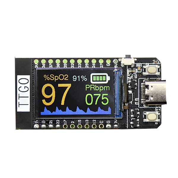 「心率血氧感測套件」採用 TTGO T-Display ESP32 Wi-Fi 開發板,結合 M5Stack MAX30100 心血氧感測器模組,可以藉由 DIY 套件學習心血氧量測方式及原理。