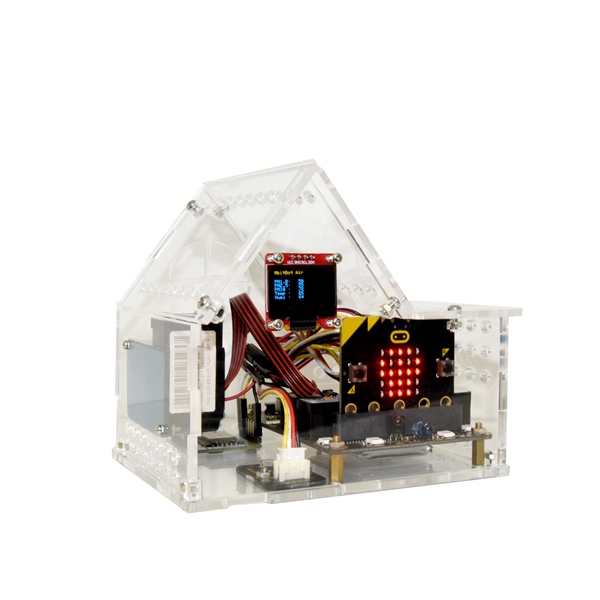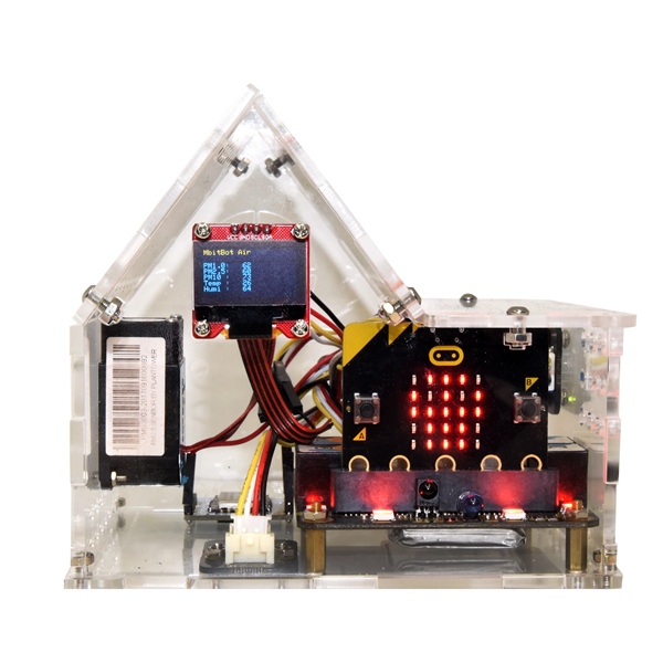 micro:bit 空氣小屋(MbitBot Lite) 是一款模擬空氣品質監測站的教學教具,讓學生能夠透過自己動手DIY 組裝與使用 Makecode 撰寫程式,使空氣小屋中的PM2.5 、溫濕度感測器偵測空氣品質,再藉由Wi-Fi 模組連上無線網路,讓使用者不論在任何地方,都能夠透過電腦或手機查看空氣小屋所在處的空氣品質,也能夠將所得的數據上傳雲端或是擷取資料,適合學生學習與製作有關環保議題的IoT 專案。